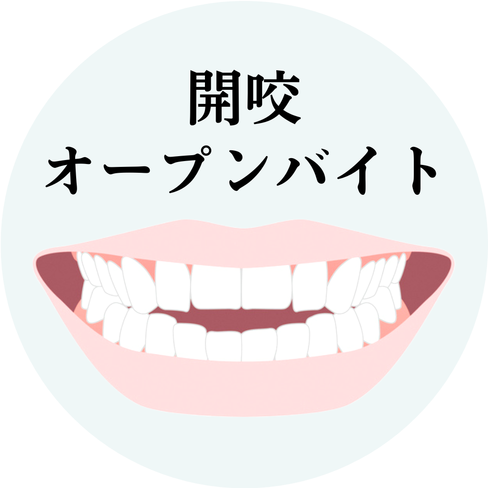 オープンバイトとも呼ばれる開咬(かいこう)は、奥歯で噛んだときに上下の前歯が閉じず、隙間が空いてしまう症状です。