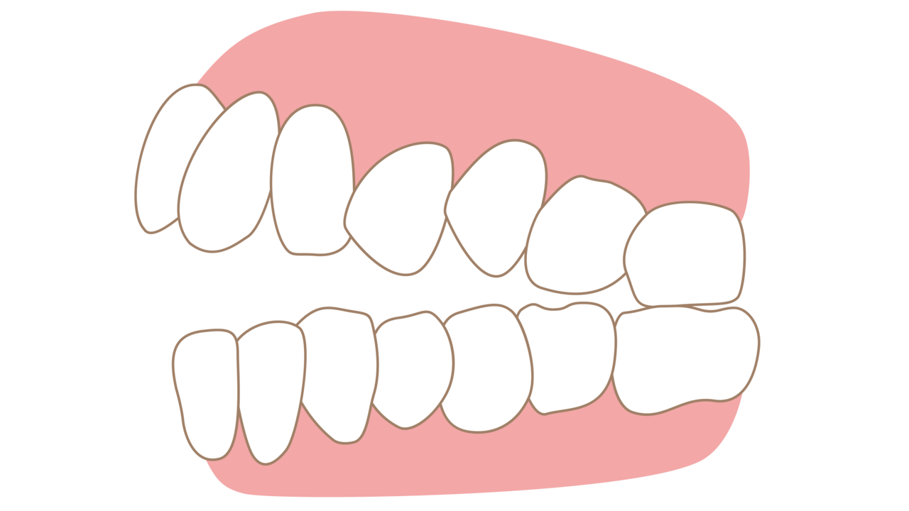 奥歯が斜めに傾いて前歯を押し出していると、前歯を引っ込めるスペースがありません。